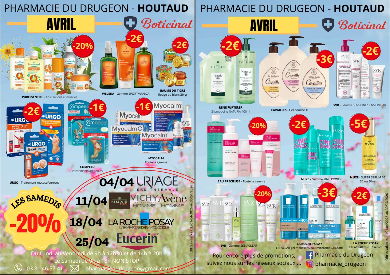 La Pharmacie du Drugeon vous propose avec la carte de fidélité Boticinal un cumul de 2% de votre achat à chaque passage en caisse + 5€ offerts à chaque anniversaire. Demandez-la sans attendre !